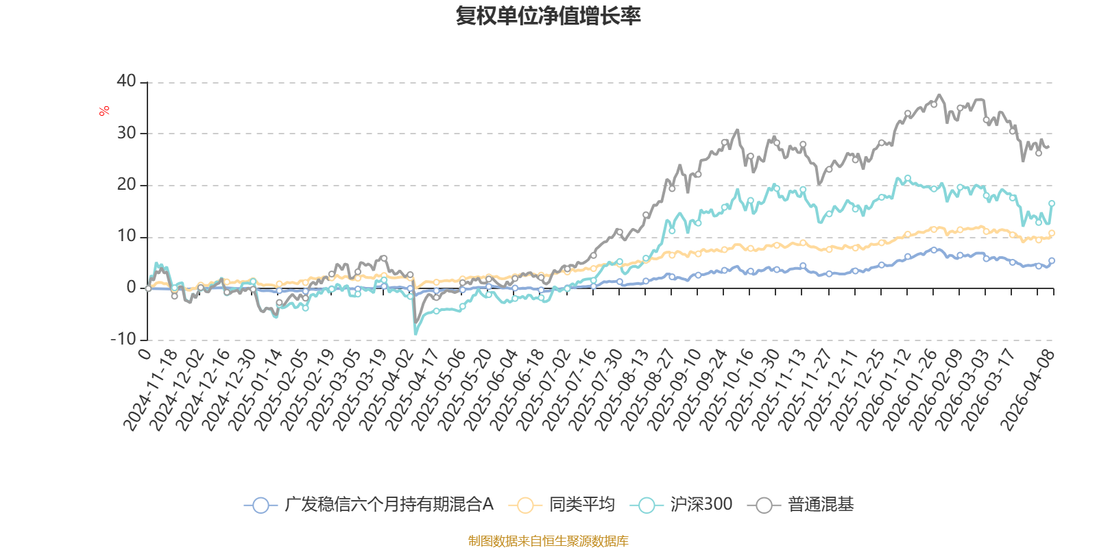截至4月8日,广发稳信六个月持有期混合A近三个月复权单位净值增长率为0.07%,位于同类可比基金399/629;近半年复权单位净值增长率为1.18%,位于同类可比基金343/629;近一年复权单位净值增长率为6.47%,位于同类可比基金372/629。