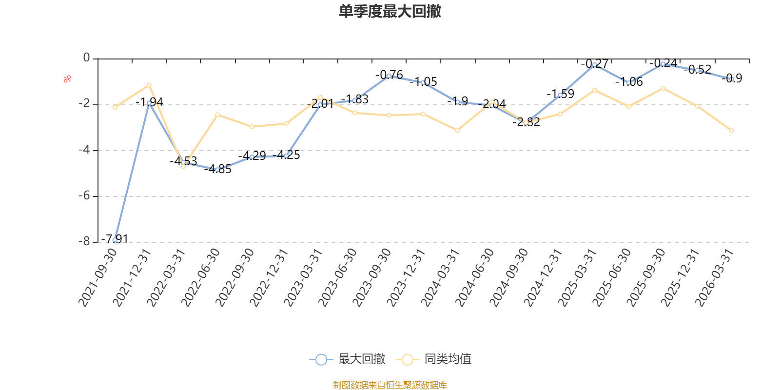 截至4月8日,基金近三年最大回撤为4.04%,同类可比基金排名130/534。单季度最大回撤出现在2021年三季度,为7.91%。