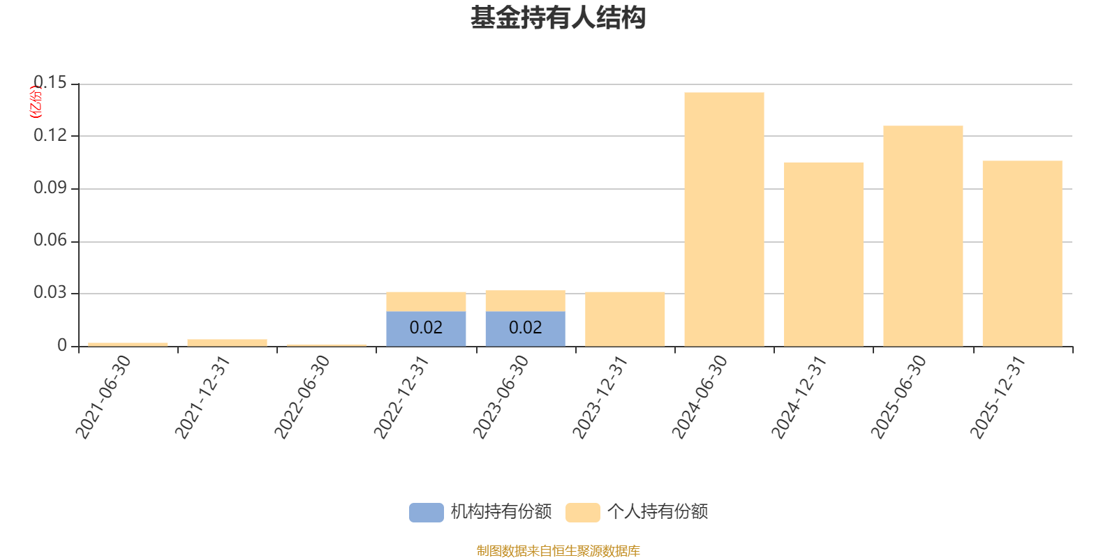 截至2025年12月31日,基金持有人共计133户,合计持有1062.33万份。其中管理人员工持有101.42万份,占比9.55%,个人投资者占比100.00%。