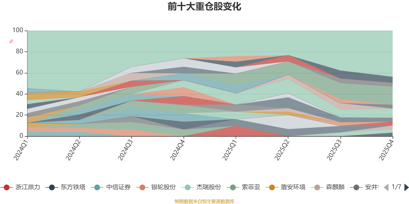 截至2025年末,基金十大重仓股分别是美的集团、中国海油、紫金矿业、格力电器、云天化、杰瑞股份、信立泰、亚钾国际、东方铁塔、森麒麟。