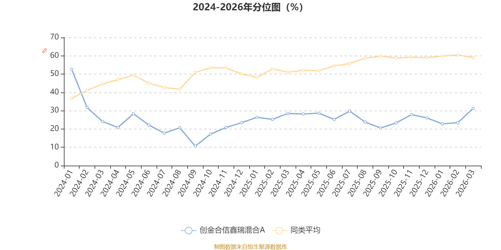通过所选区间该基金净值增长率分位图,可以观察该基金与同类基金业绩比较情况。图为坐标原点到区间内某时点的净值增长率在同类基金中的分位数。