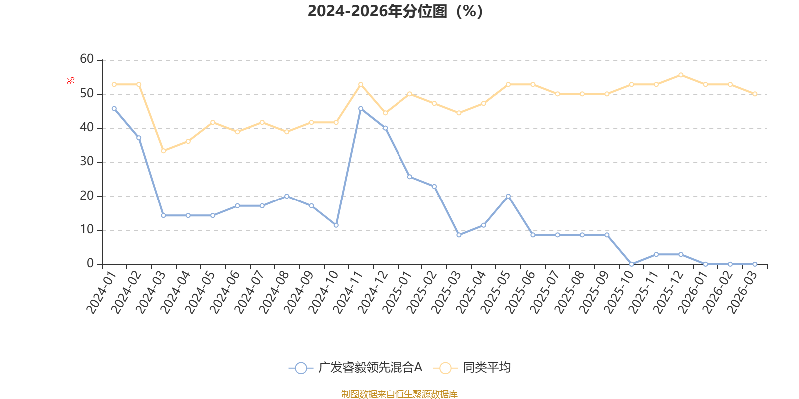 通过所选区间该基金净值增长率分位图,可以观察该基金与同类基金业绩比较情况。图为坐标原点到区间内某时点的净值增长率在同类基金中的分位数。