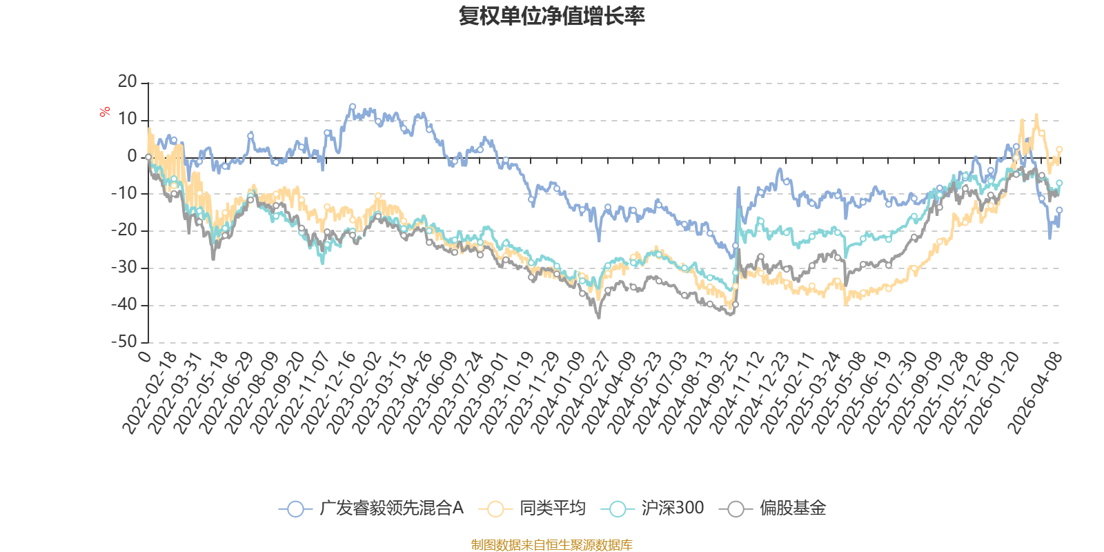 截至4月8日,广发睿毅领先混合A近三个月复权单位净值增长率为-16.14%,位于同类可比基金47/49;近半年复权单位净值增长率为-6.79%,位于同类可比基金49/49;近一年复权单位净值增长率为1.81%,位于同类可比基金47/48;近三年复权单位净值增长率为-23.22%,位于同类可比基金31/31。