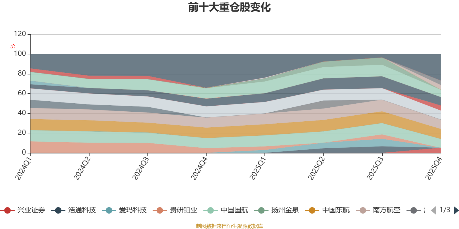 该基金持股集中度较高,近2年前十大重仓股集中度长期超过60%。截至2025年末,基金十大重仓股分别是中国东航、南方航空、春秋航空、中国国航、华夏航空、吉祥航空、大丰实业、兴业证券、广州酒家、国泰海通。