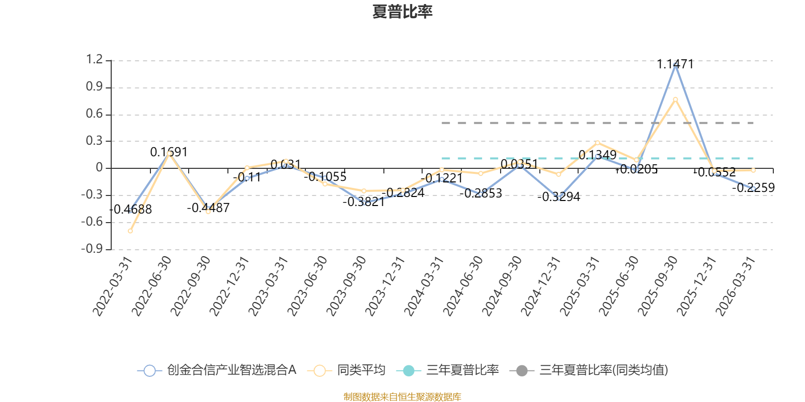 截至3月31日,基金近三年夏普比率为0.1104,位于同类可比基金161/178。