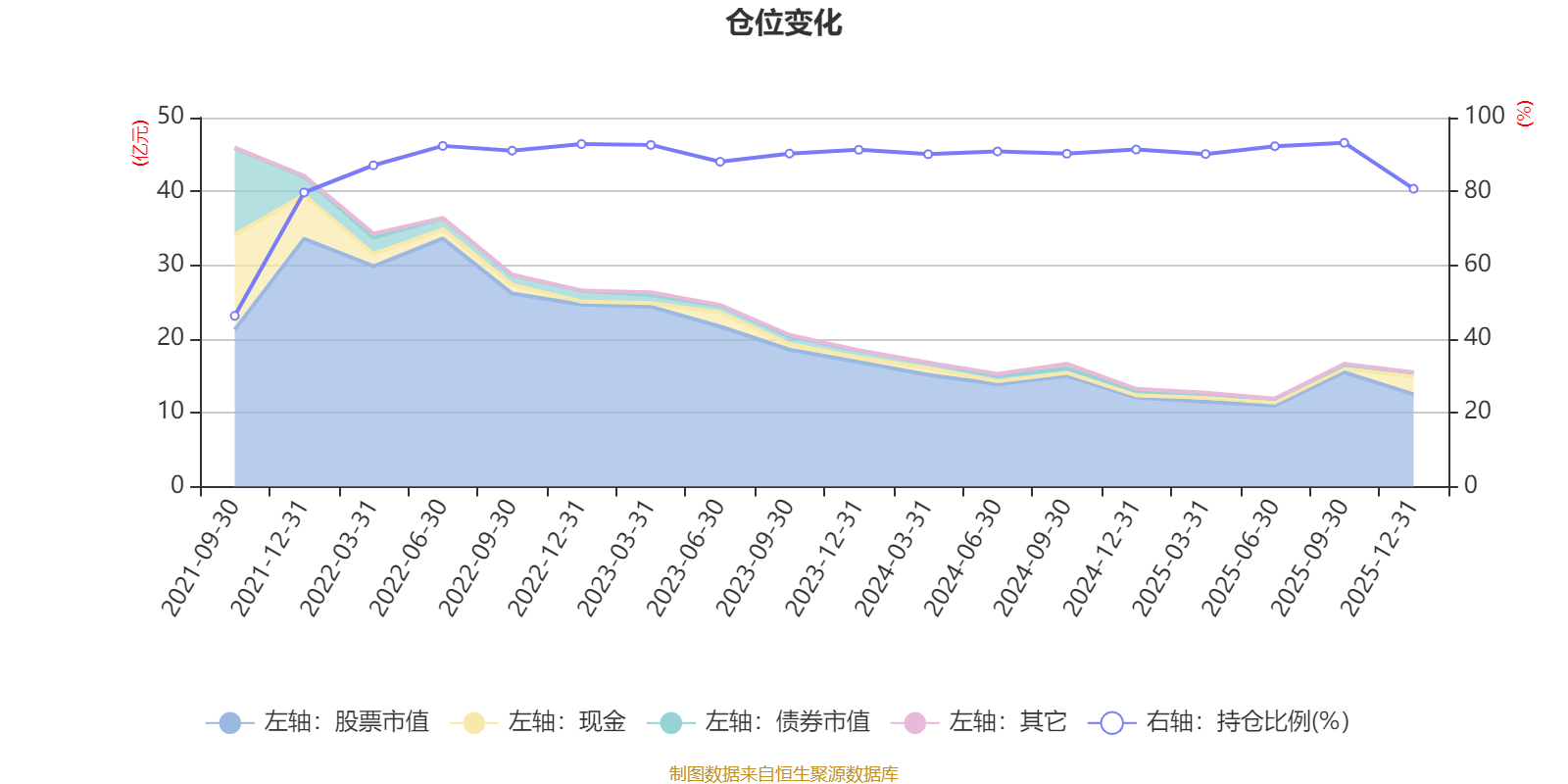 据定期报告数据统计,近三年平均股票仓位为90.07%,同类平均为87.64%。2025年三季度末基金达到93.18%的最高仓位,2021年三季度末最低,为46.28%。