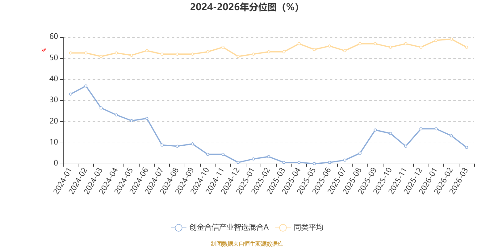 通过所选区间该基金净值增长率分位图,可以观察该基金与同类基金业绩比较情况。图为坐标原点到区间内某时点的净值增长率在同类基金中的分位数。