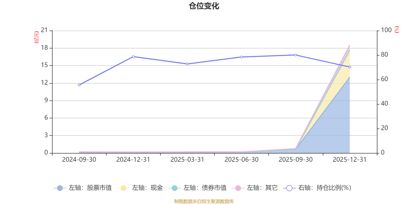 据定期报告数据统计,成立以来平均股票仓位为72.64%,同类平均为87.15%。2025年三季度末基金达到80.08%的最高仓位,2024年三季度末最低,为55.55%。
