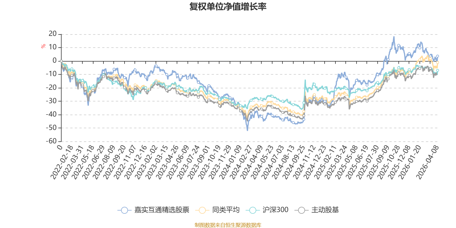 截至4月8日,嘉实互通精选股票近三个月复权单位净值增长率为-5.30%,位于同类可比基金138/167;近半年复权单位净值增长率为-11.02%,位于同类可比基金158/167;近一年复权单位净值增长率为38.87%,位于同类可比基金100/165;近三年复权单位净值增长率为11.51%,位于同类可比基金105/157。