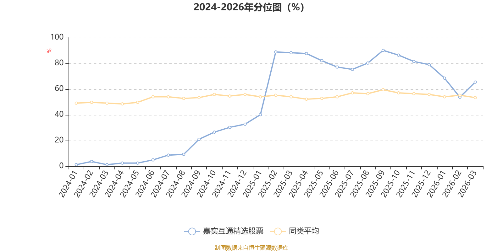 通过所选区间该基金净值增长率分位图,可以观察该基金与同类基金业绩比较情况。图为坐标原点到区间内某时点的净值增长率在同类基金中的分位数。
