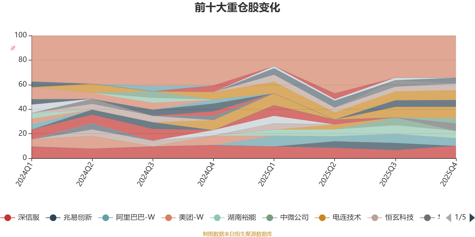 该基金持股集中度较高。截至2025年末,基金十大重仓股分别是深信服、小米集团-W、腾讯控股、阿里巴巴-W、华友钴业、湖南裕能、经纬恒润、比亚迪、豪威集团、亿纬锂能。