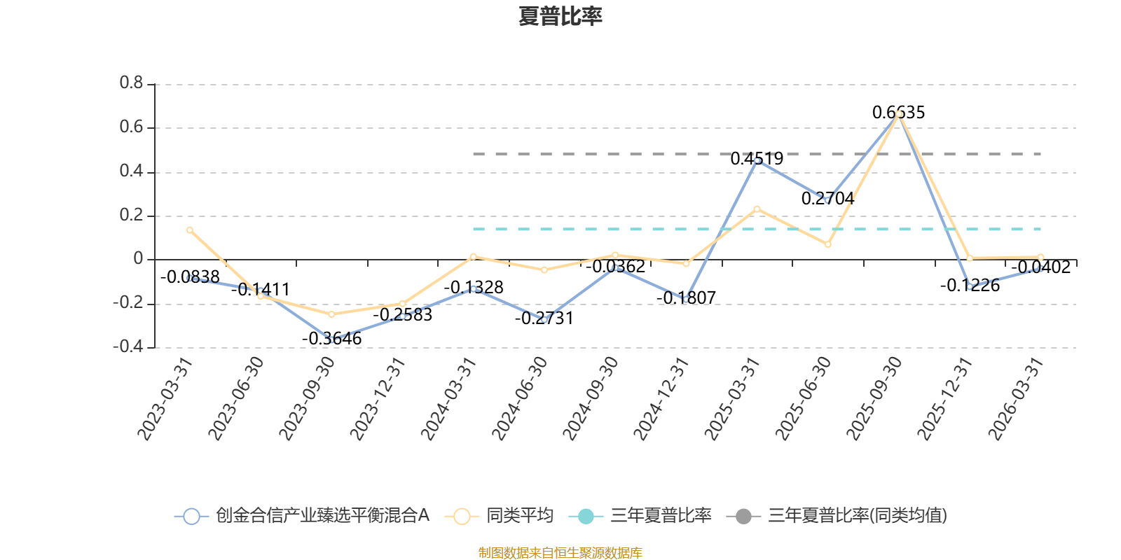 截至3月31日,基金近三年夏普比率为0.1392,位于同类可比基金109/124。