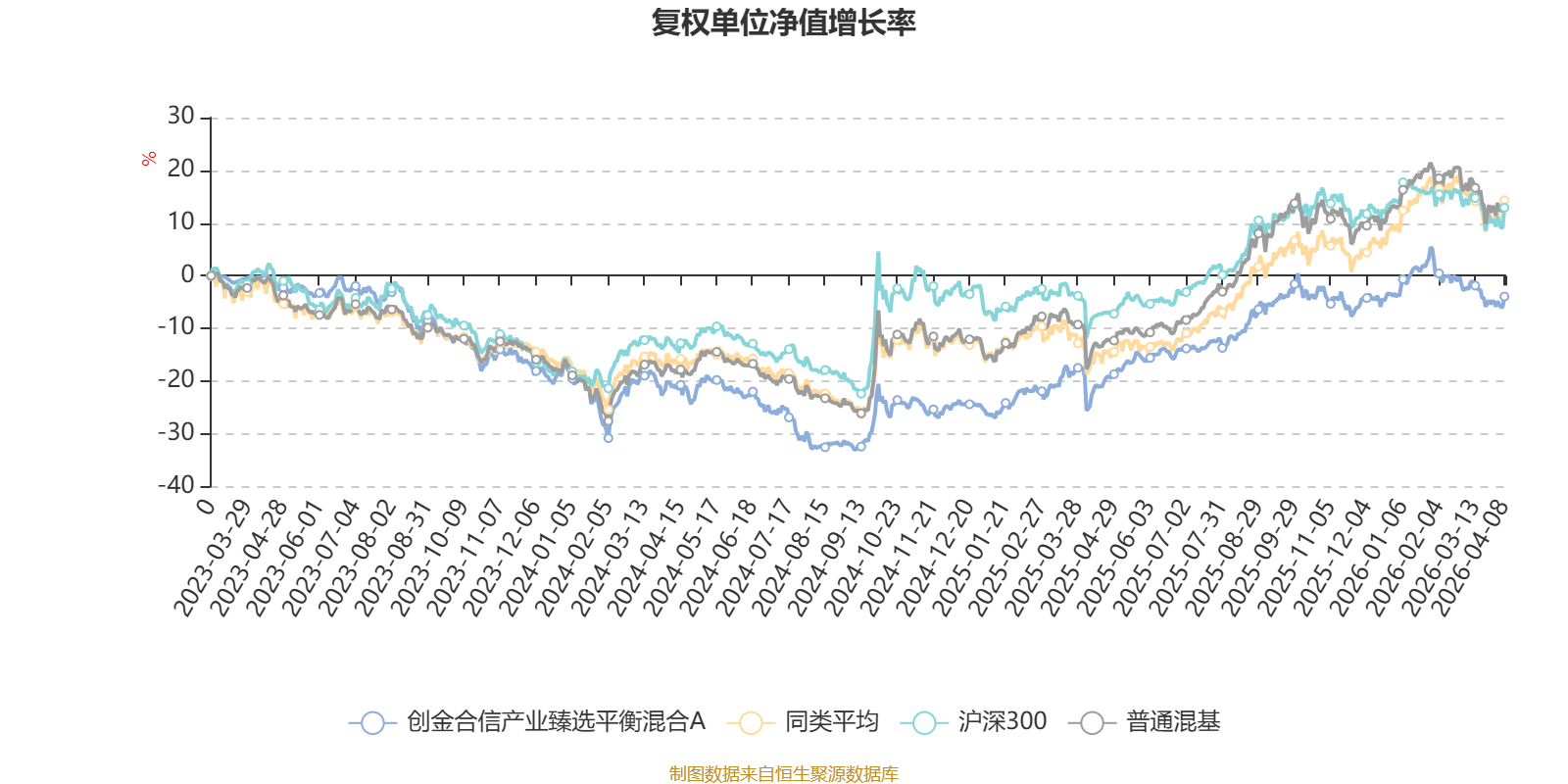 截至4月8日,创金合信产业臻选平衡混合A近三个月复权单位净值增长率为-2.39%,位于同类可比基金93/134;近半年复权单位净值增长率为-3.03%,位于同类可比基金106/134;近一年复权单位净值增长率为28.50%,位于同类可比基金65/134;近三年复权单位净值增长率为-3.45%,位于同类可比基金112/126。