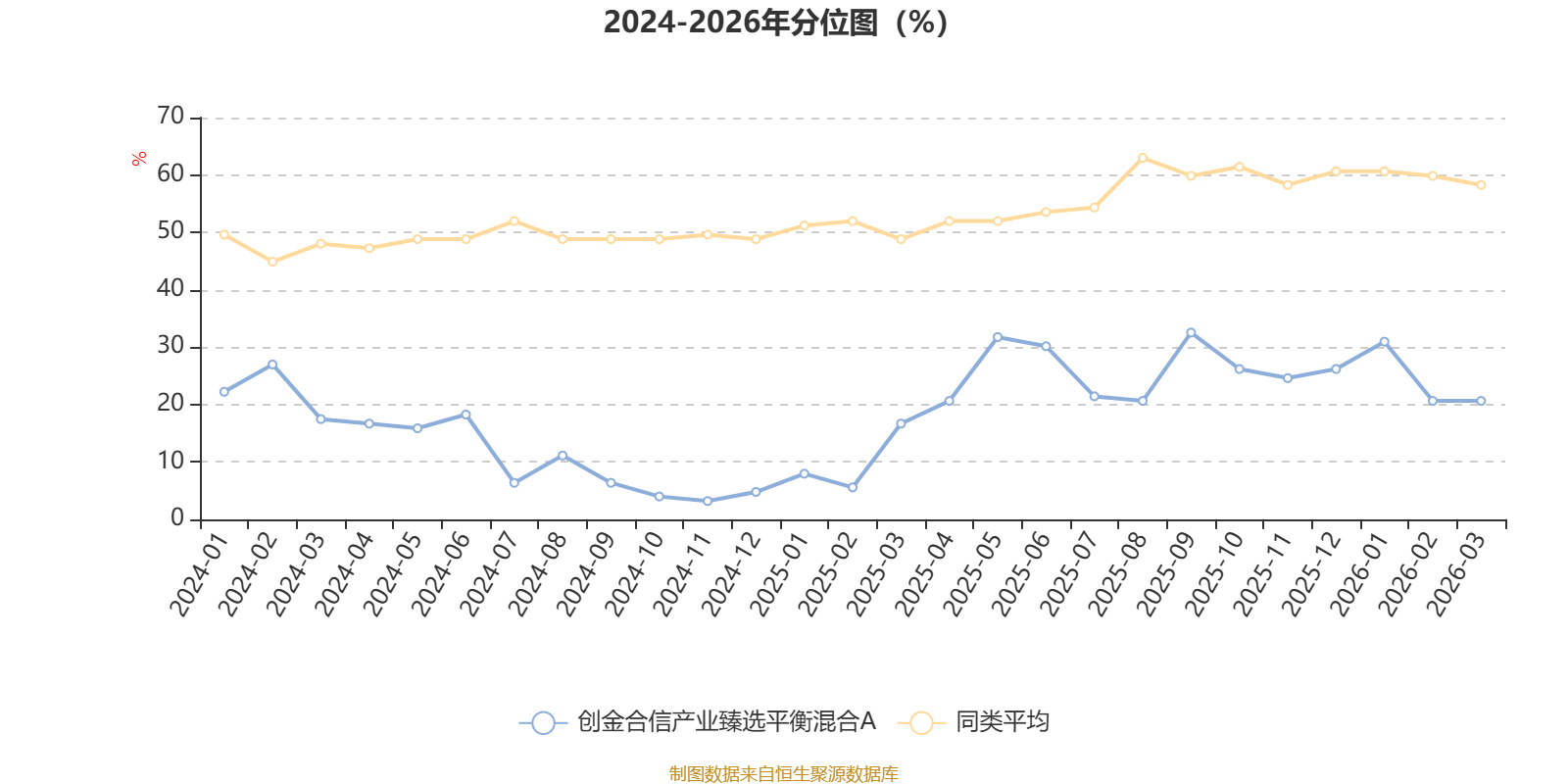 通过所选区间该基金净值增长率分位图,可以观察该基金与同类基金业绩比较情况。图为坐标原点到区间内某时点的净值增长率在同类基金中的分位数。