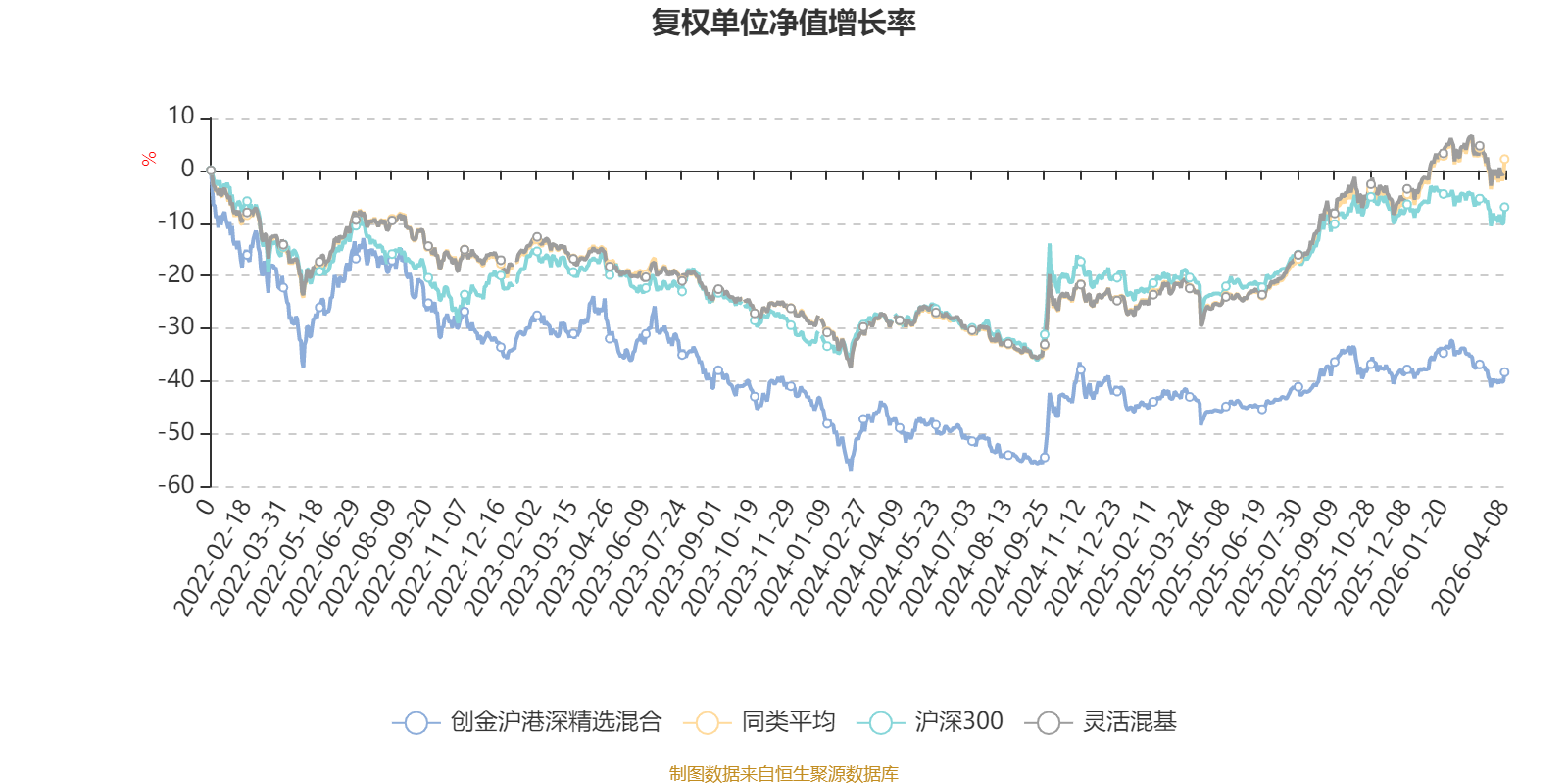 截至4月8日,创金沪港深精选混合近三个月复权单位净值增长率为-3.46%,位于同类可比基金991/1287;近半年复权单位净值增长率为-7.35%,位于同类可比基金1131/1286;近一年复权单位净值增长率为17.65%,位于同类可比基金935/1286;近三年复权单位净值增长率为-18.94%,位于同类可比基金1201/1286。