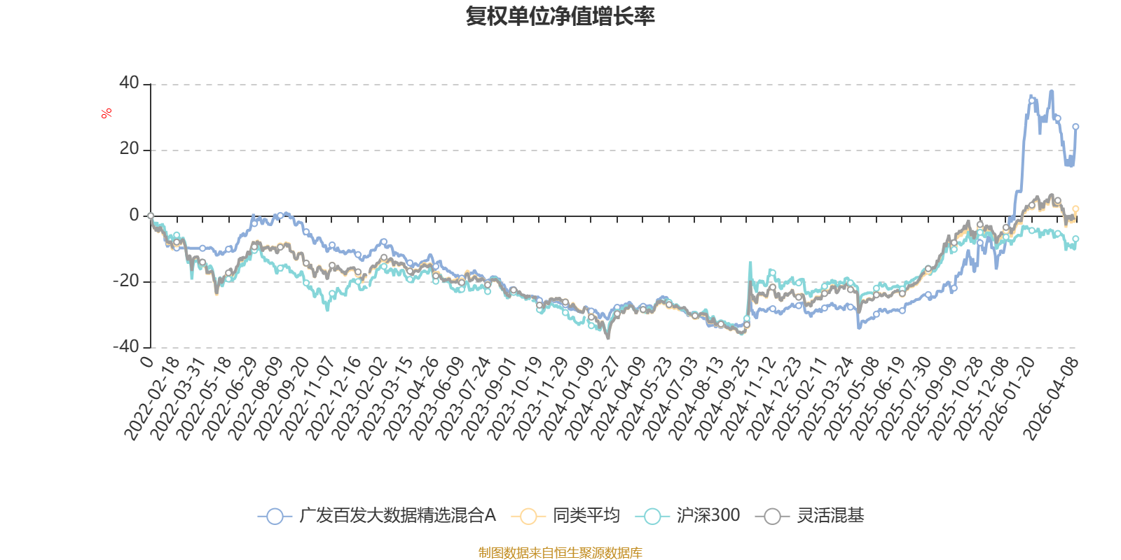 截至4月8日,广发百发大数据精选混合A近三个月复权单位净值增长率为2.04%,位于同类可比基金408/1287;近半年复权单位净值增长率为42.88%,位于同类可比基金8/1286;近一年复权单位净值增长率为92.72%,位于同类可比基金105/1286;近三年复权单位净值增长率为47.13%,位于同类可比基金165/1286。