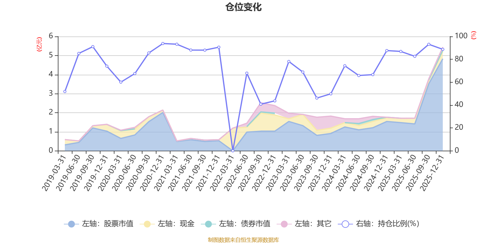 据定期报告数据统计,近三年平均股票仓位为74.06%,同类平均为72.57%。2020年末基金达到93.81%的最高仓位,2022年三季度末最低,为40.77%。