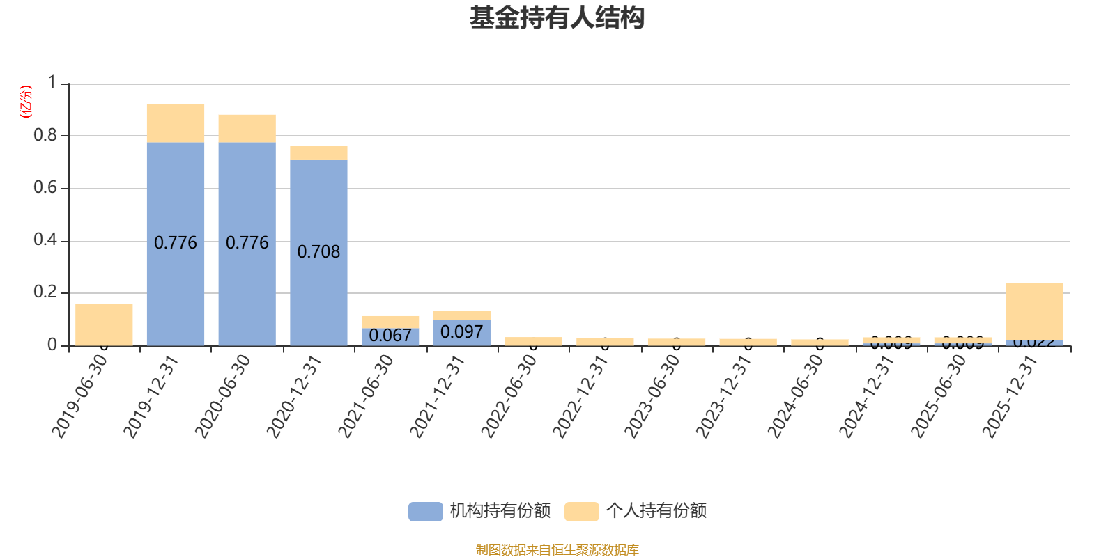 截至2025年12月31日,基金持有人共计907户,合计持有2404.54万份。其中管理人员工持有96.36万份,占比4.01%,机构持有份额占比9.29%,个人投资者占比90.71%。