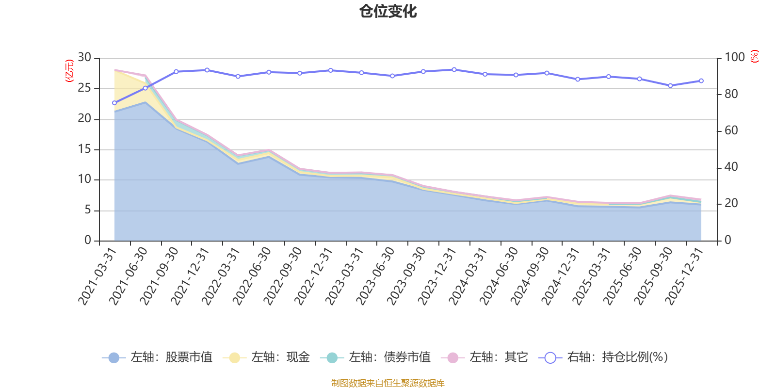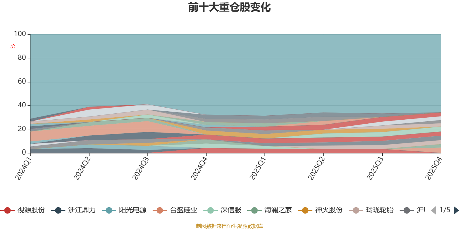 截至2025年末,基金十大重仓股分别是合盛硅业、TCL科技、万华化学、安井食品、玲珑轮胎、石头科技、锦江酒店、海澜之家、甘源食品、TCL中环。
