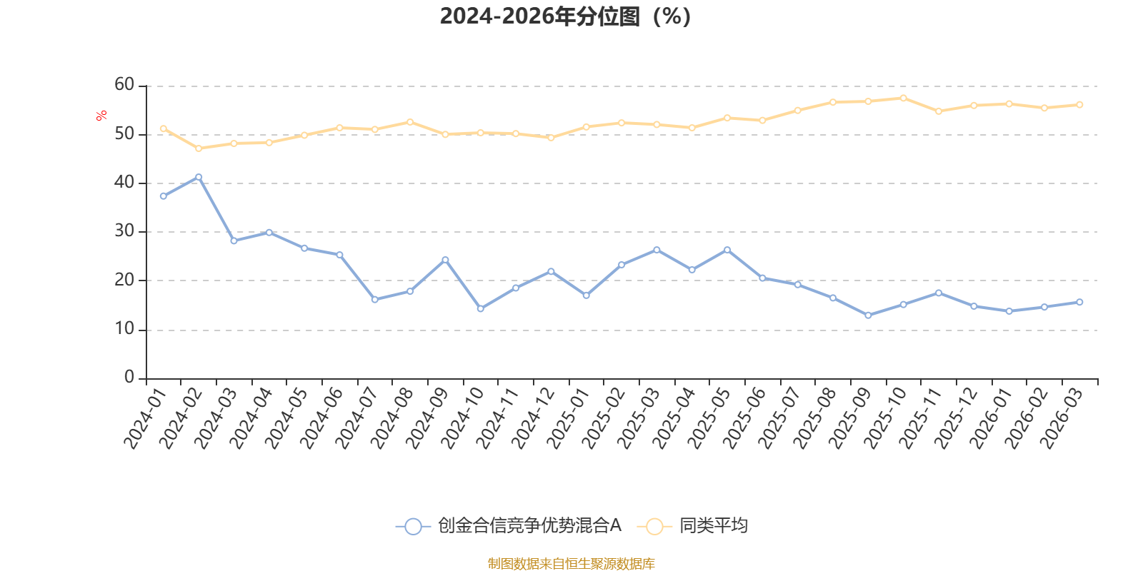 通过所选区间该基金净值增长率分位图,可以观察该基金与同类基金业绩比较情况。图为坐标原点到区间内某时点的净值增长率在同类基金中的分位数。