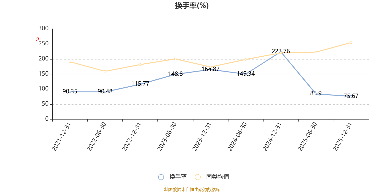截至2025年12月31日,基金最近一年换手率约157.86%,持续1年低于同类均值。