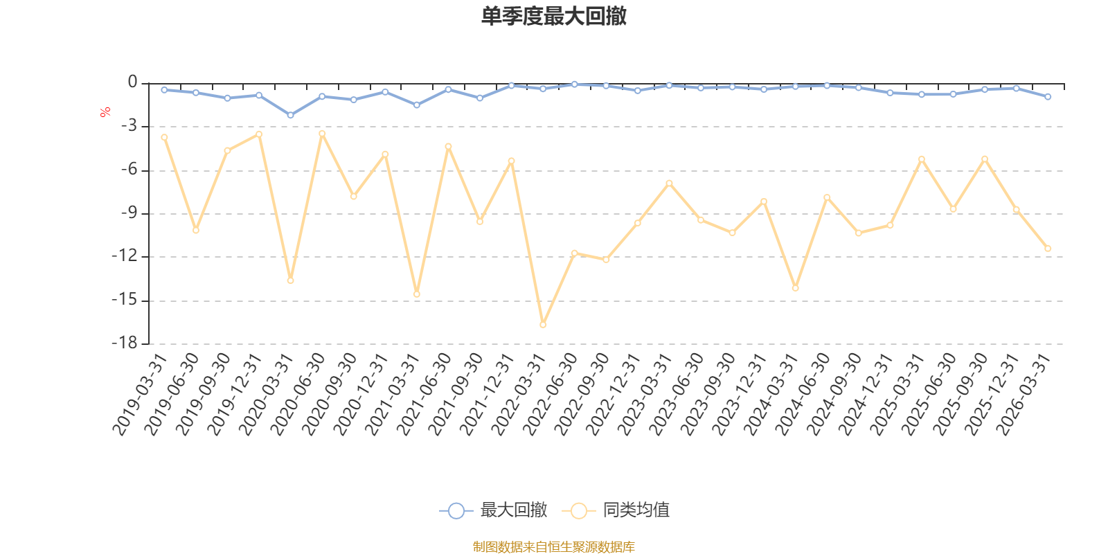 截至4月8日,基金近三年最大回撤为1.44%,同类可比基金排名5/1264。单季度最大回撤出现在2020年一季度,为2.21%。