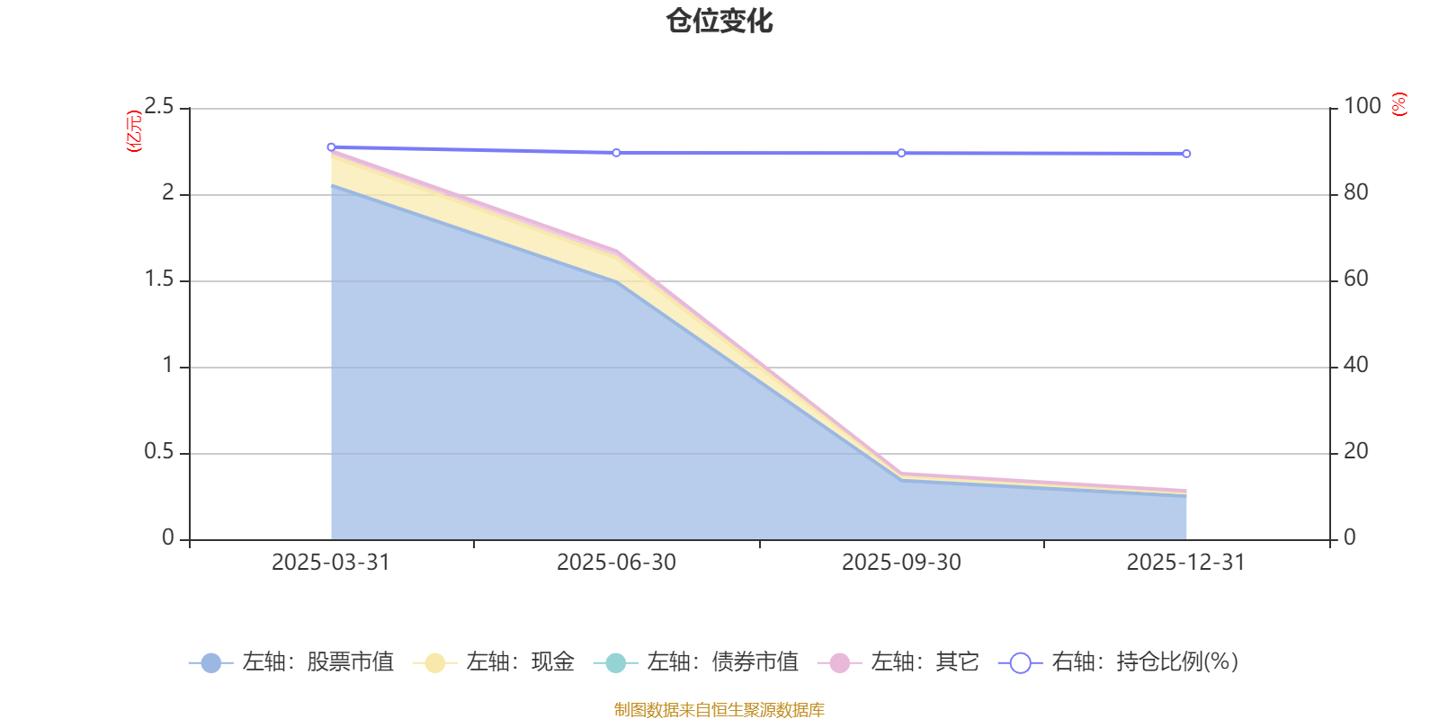 据定期报告数据统计,成立以来平均股票仓位为89.85%,同类平均为89.51%。2025年一季度末基金达到90.91%的最高仓位,2025年末最低,为89.38%。