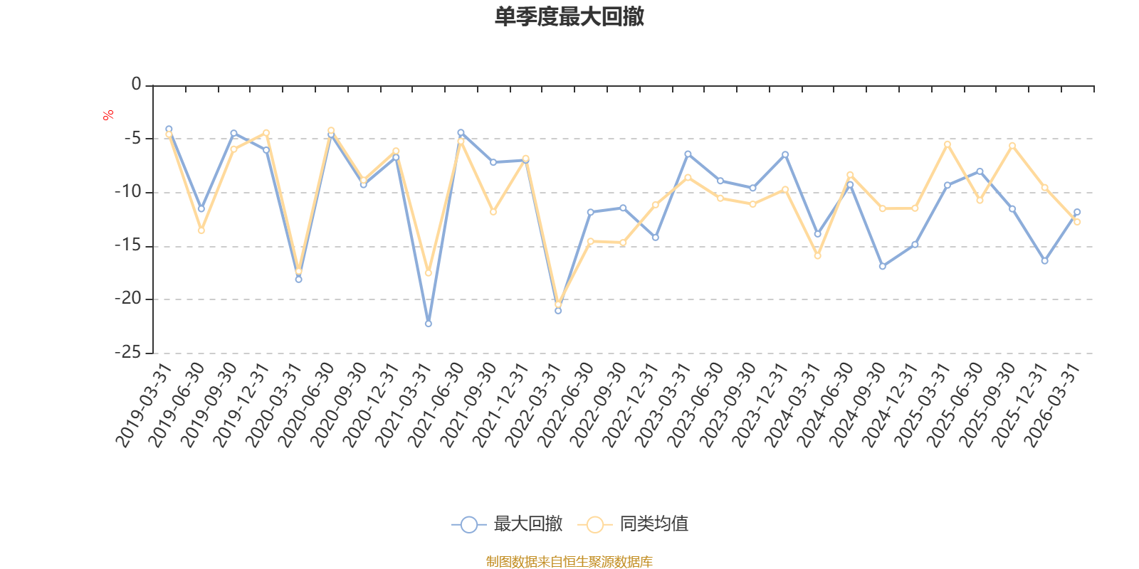 通过所选区间该基金净值增长率分位图,可以观察该基金与同类基金业绩比较情况。图为坐标原点到区间内某时点的净值增长率在同类基金中的分位数。