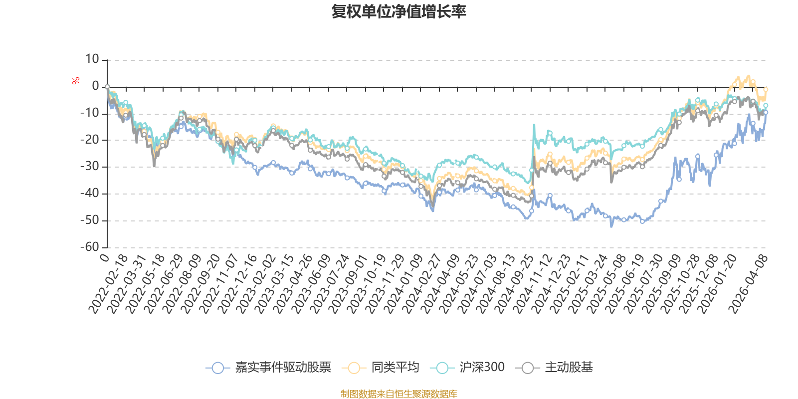 截至4月8日,嘉实事件驱动股票近三个月复权单位净值增长率为16.07%,位于同类可比基金4/167;近半年复权单位净值增长率为27.55%,位于同类可比基金5/167;近一年复权单位净值增长率为87.93%,位于同类可比基金11/165;近三年复权单位净值增长率为24.90%,位于同类可比基金64/157。