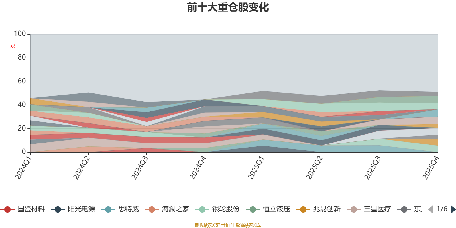 截至2025年末,基金十大重仓股分别是中际旭创、宁德时代、广钢气体、中微公司、银轮股份、兆易创新、立讯精密、东方雨虹、寒武纪、广联达。