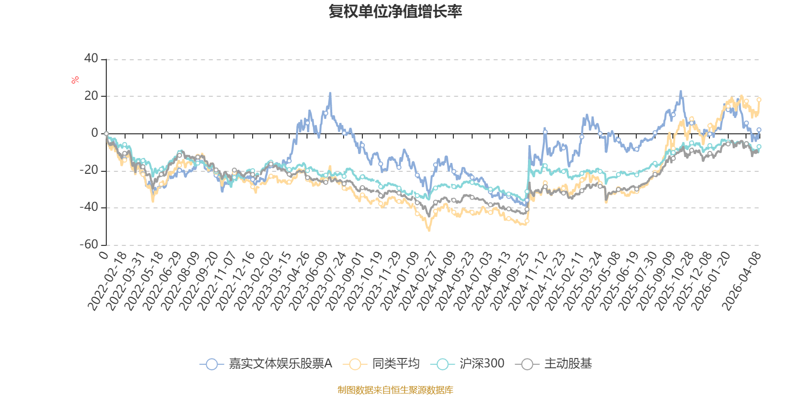 截至4月8日,嘉实文体娱乐股票A近三个月复权单位净值增长率为-6.01%,位于同类可比基金54/63;近半年复权单位净值增长率为-14.64%,位于同类可比基金59/63;近一年复权单位净值增长率为13.12%,位于同类可比基金61/63;近三年复权单位净值增长率为-3.86%,位于同类可比基金48/53。