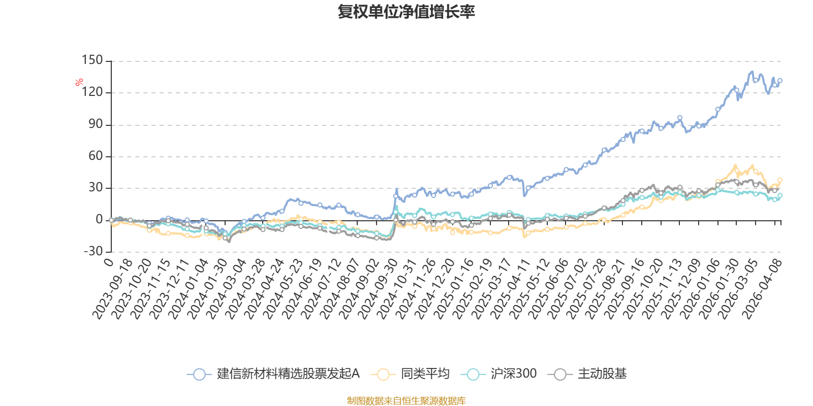 截至4月8日,建信新材料精选股票发起A近三个月复权单位净值增长率为13.11%,位于同类可比基金3/13;近半年复权单位净值增长率为22.25%,位于同类可比基金5/13;近一年复权单位净值增长率为87.74%,位于同类可比基金6/13。