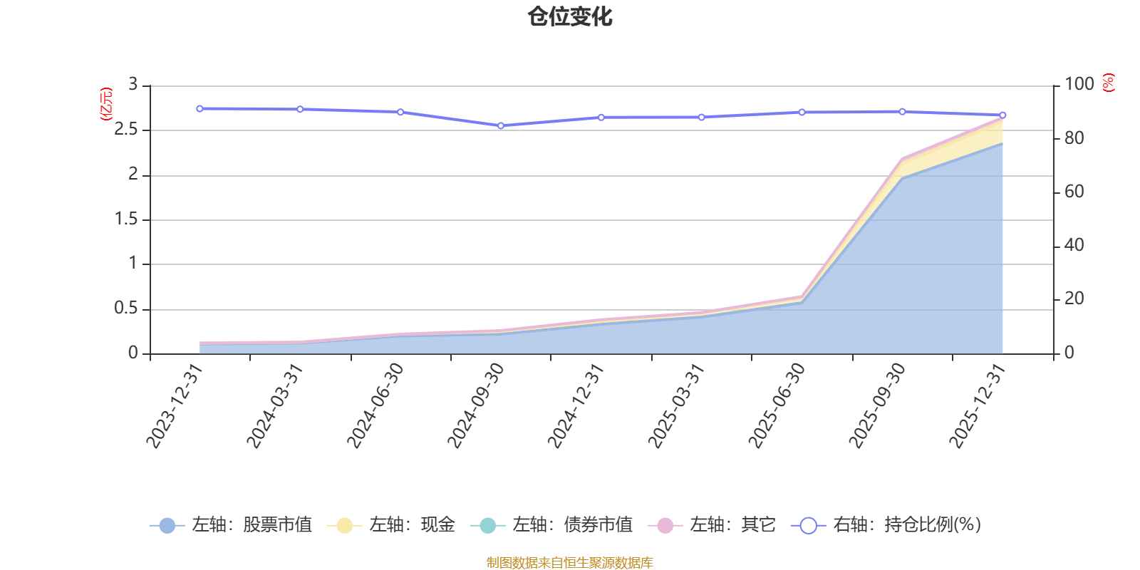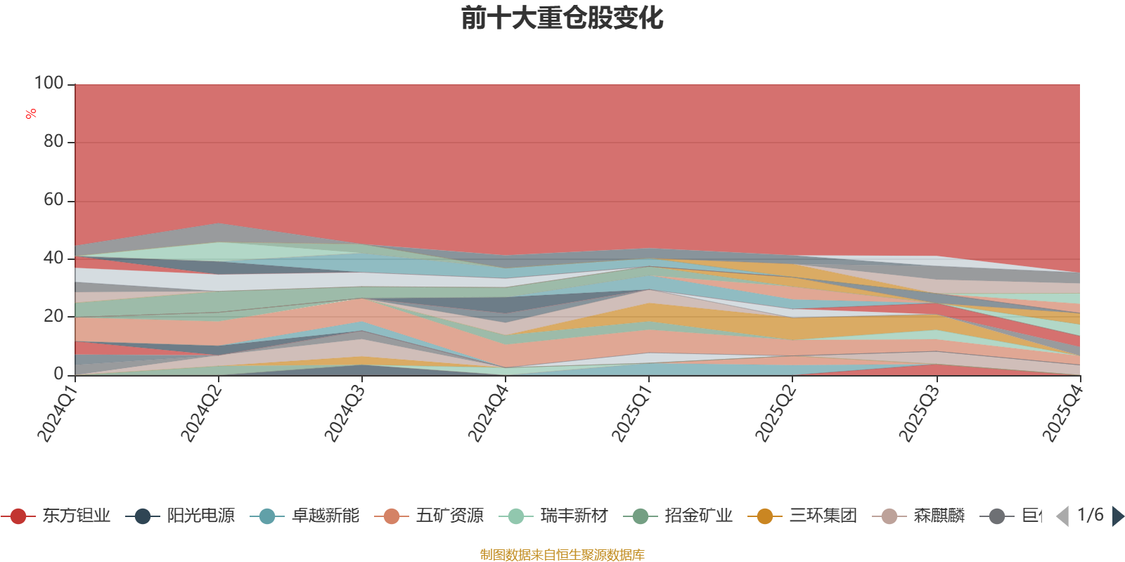 截至2025年末,基金十大重仓股分别是恩捷股份、广东宏大、英科医疗、紫金矿业、雅克科技、森麒麟、利安隆、新金路、宁德时代、扬农化工。