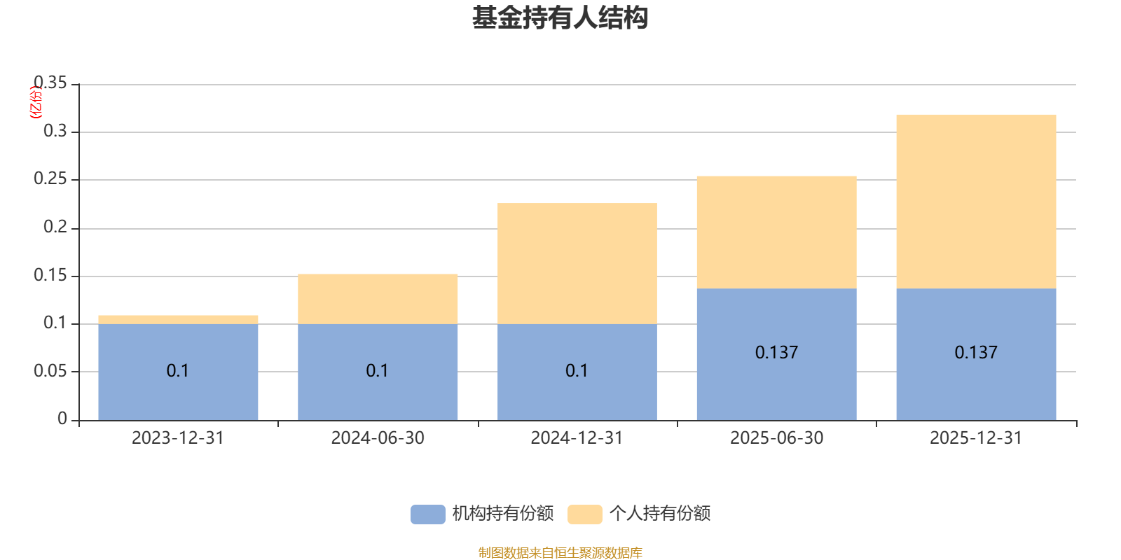 截至2025年12月31日,基金持有人共计1132户,合计持有3177.03万份。其中管理人员工持有10.8万份,占比0.34%,机构持有份额占比43.04%,个人投资者占比56.96%。