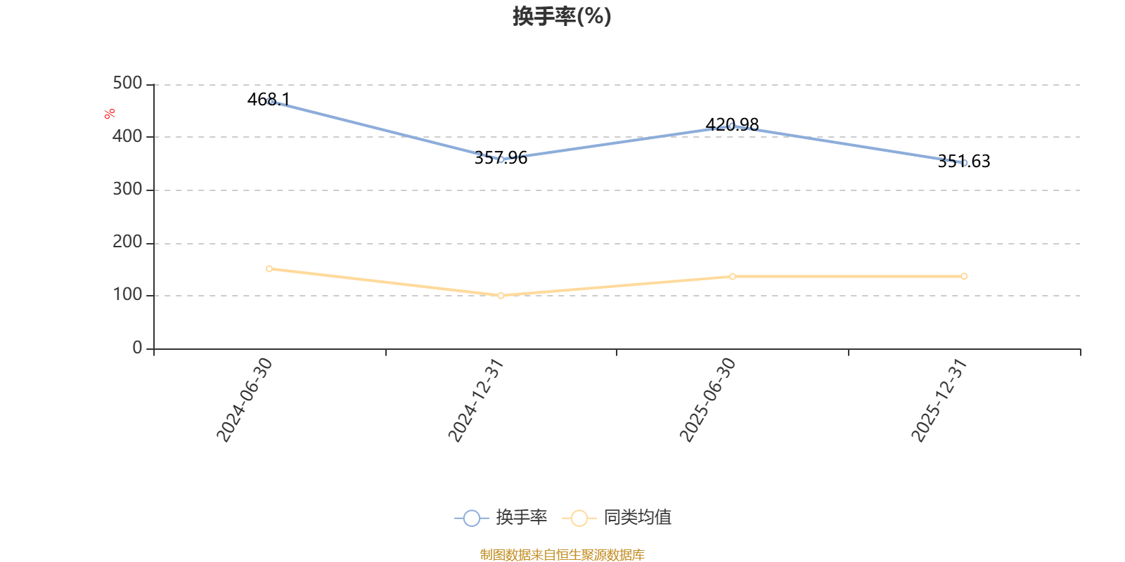 截至2025年12月31日,基金最近一年换手率约672.46%,持续高于同类均值。
