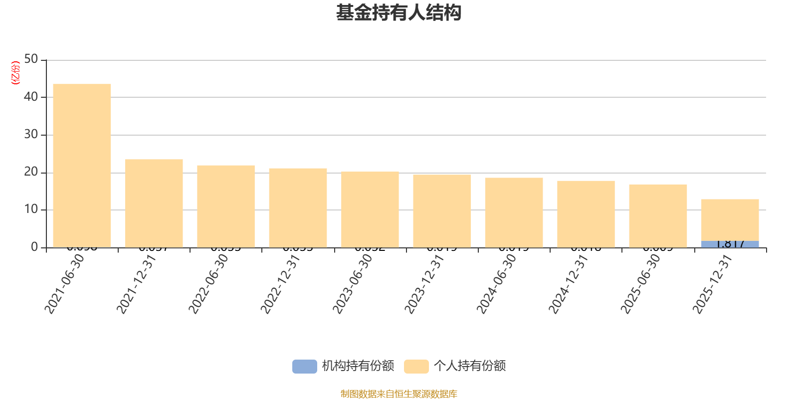 截至2025年12月31日,基金持有人共计1.89万户,合计持有12.89亿份。其中管理人员工持有10.1万份,占比0.01%,机构持有份额占比14.10%,个人投资者占比85.90%。