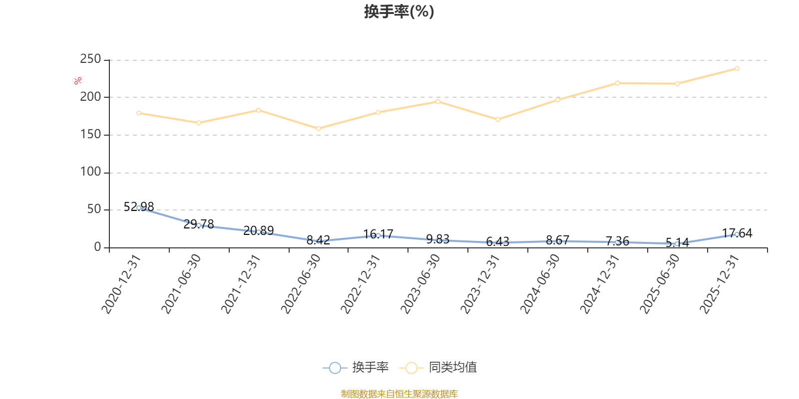 截至2025年12月31日,基金最近一年换手率约22.48%,持续低于同类均值。
