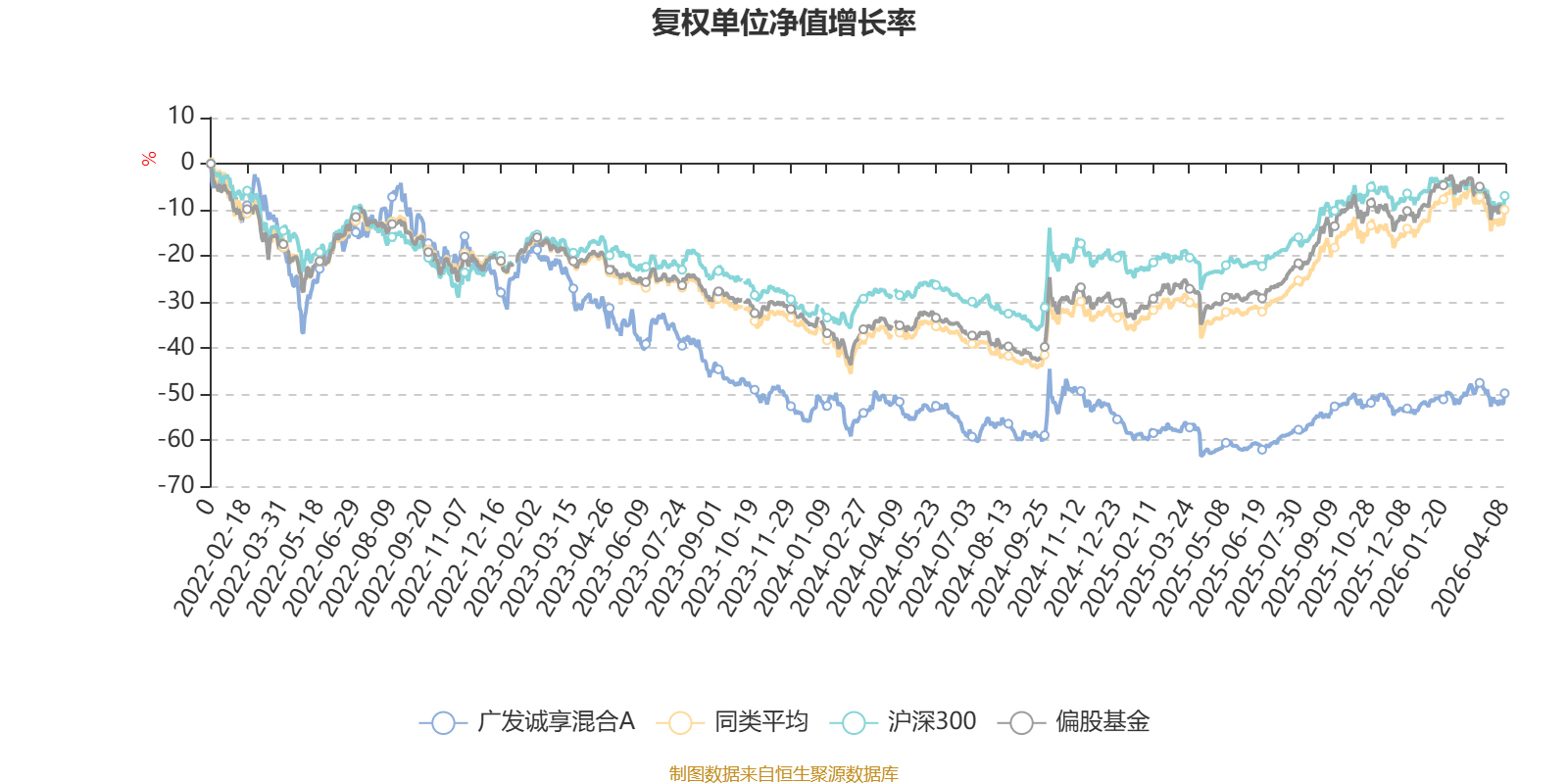 截至4月8日,广发诚享混合A近三个月复权单位净值增长率为3.54%,位于同类可比基金41/185;近半年复权单位净值增长率为0.69%,位于同类可比基金96/185;近一年复权单位净值增长率为36.61%,位于同类可比基金105/185;近三年复权单位净值增长率为-28.21%,位于同类可比基金175/177。