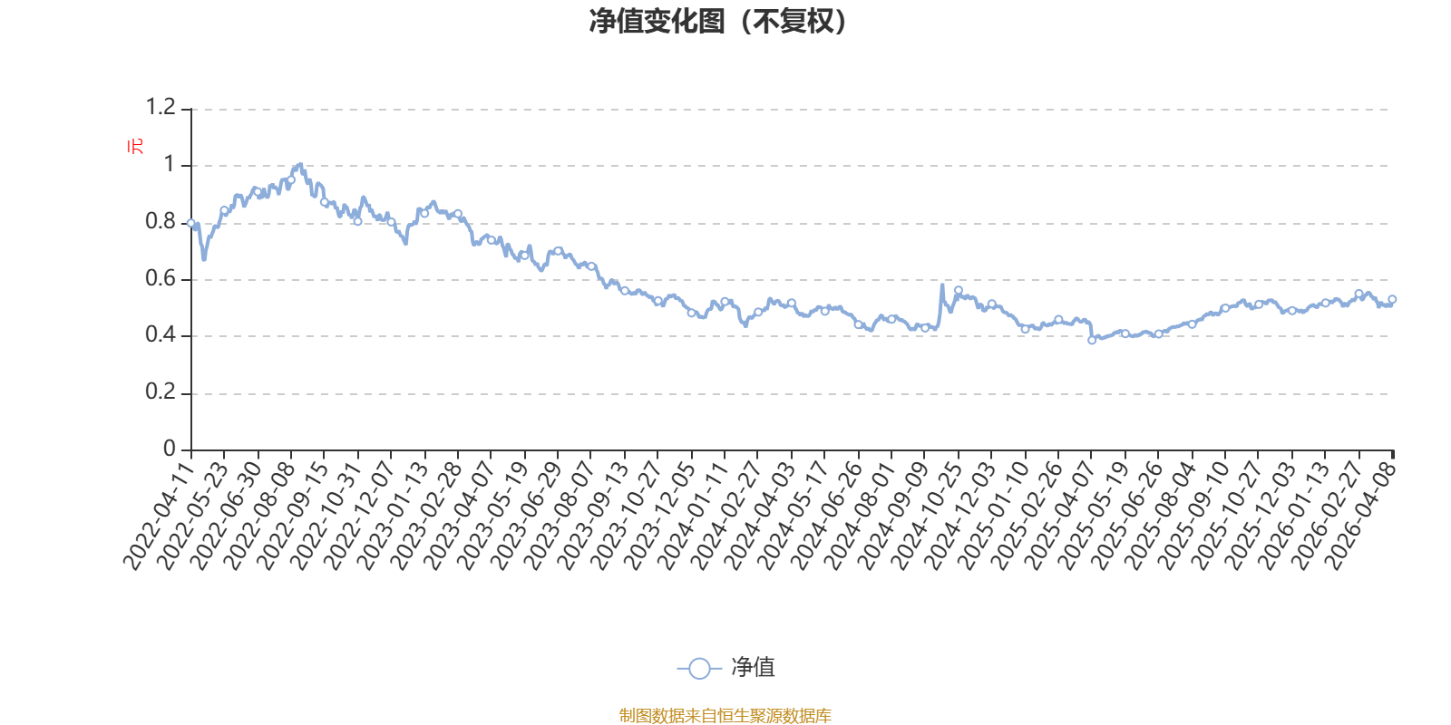 该基金属于偏股混合型基金。截至4月8日,单位净值为0.53元。基金经理是观富钦、郑澄然和叶帅。