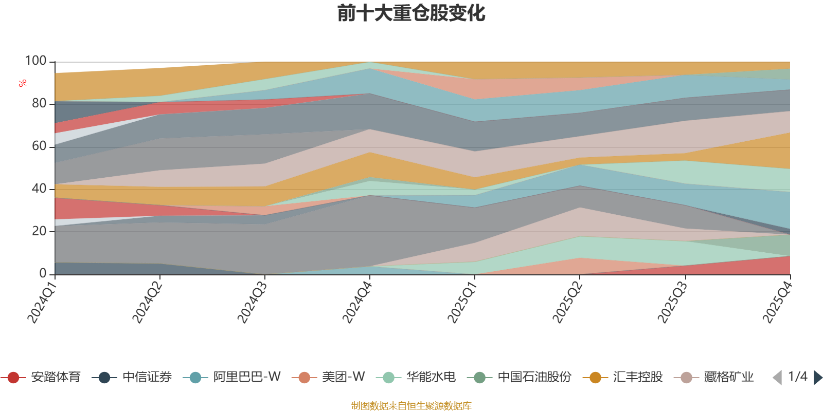 该基金持股集中度较高,近2年前十大重仓股集中度长期超过60%。截至2025年末,基金十大重仓股分别是川投能源、国投电力、长江电力、腾讯控股、中国石油股份、中国移动、安踏体育、新天然气、中广核电力、网易云音乐。