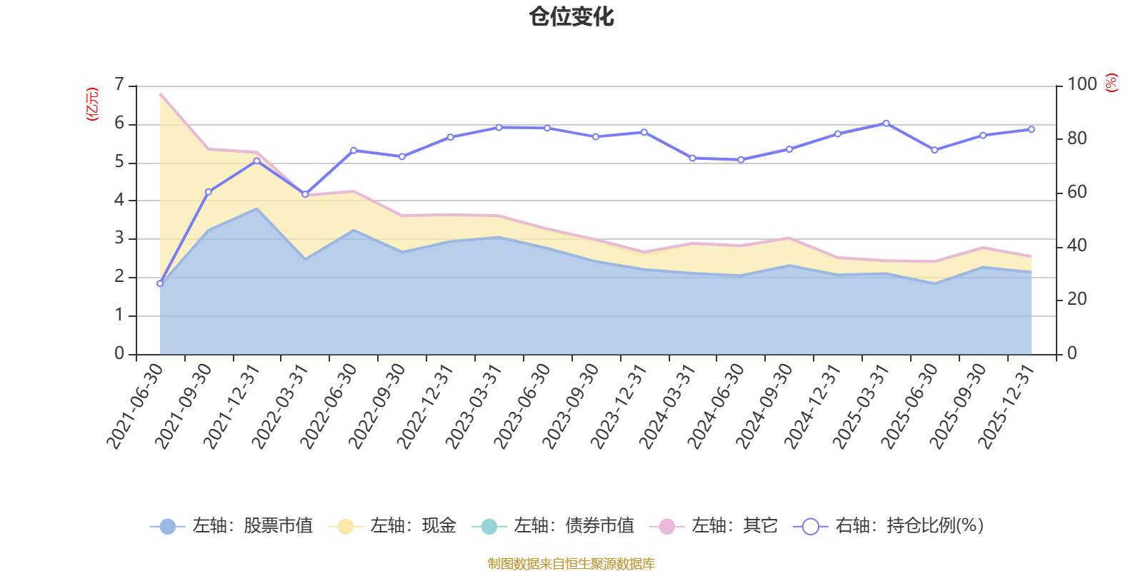 据定期报告数据统计,近三年平均股票仓位为80.29%,同类平均为85.83%。2025年一季度末基金达到85.98%的最高仓位,2021年上半年末最低,为26.38%。