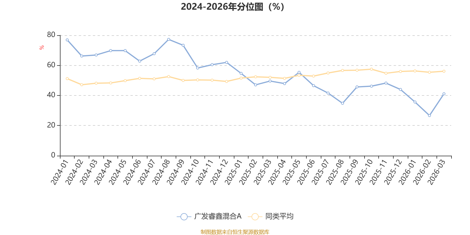 通过所选区间该基金净值增长率分位图,可以观察该基金与同类基金业绩比较情况。图为坐标原点到区间内某时点的净值增长率在同类基金中的分位数。
