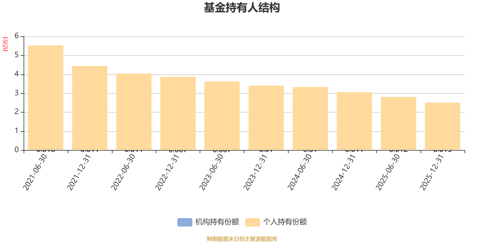 截至2025年12月31日,基金持有人共计5017户,合计持有2.51亿份。其中管理人员工持有100.53万份,占比0.40%,机构持有份额占比0.52%,个人投资者占比99.48%。