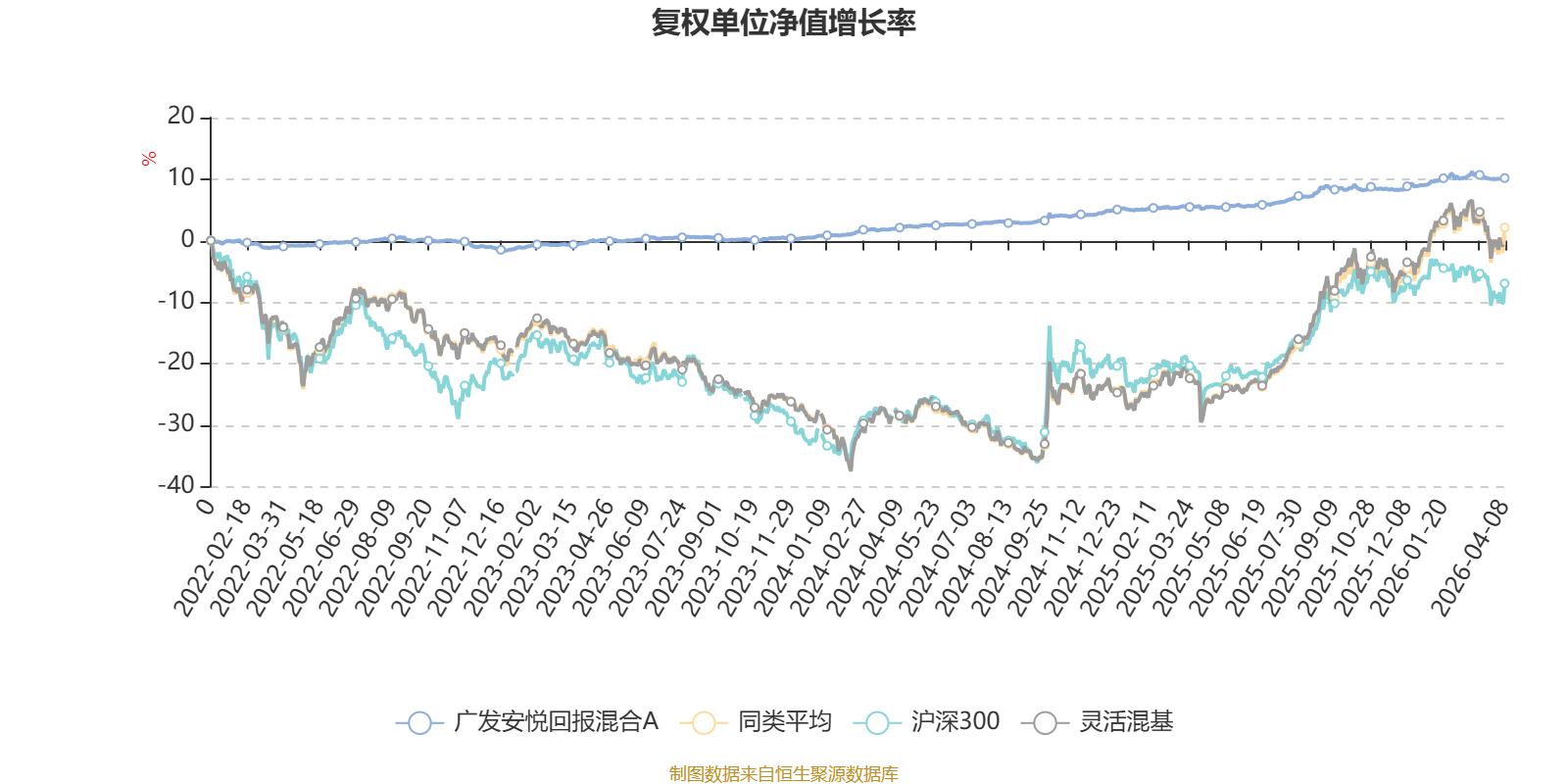 截至4月8日,广发安悦回报混合A近三个月复权单位净值增长率为0.54%,位于同类可比基金578/1287;近半年复权单位净值增长率为1.21%,位于同类可比基金764/1286;近一年复权单位净值增长率为4.75%,位于同类可比基金1190/1286;近三年复权单位净值增长率为10.06%,位于同类可比基金733/1286。