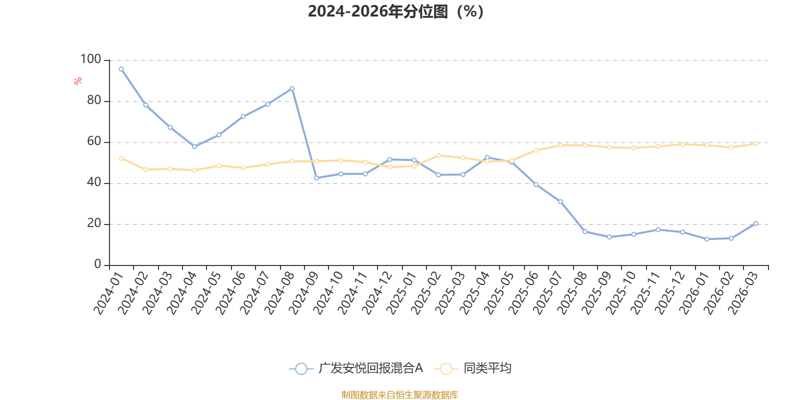 通过所选区间该基金净值增长率分位图,可以观察该基金与同类基金业绩比较情况。图为坐标原点到区间内某时点的净值增长率在同类基金中的分位数。