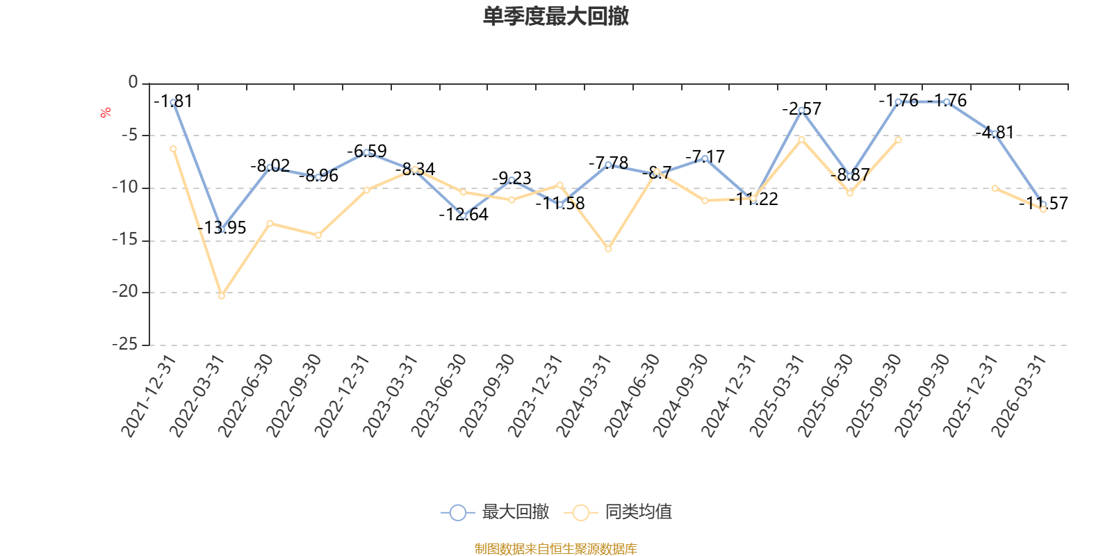 截至4月8日,基金近三年最大回撤为28.69%,同类可比基金排名83/259。单季度最大回撤出现在2022年一季度,为13.95%。