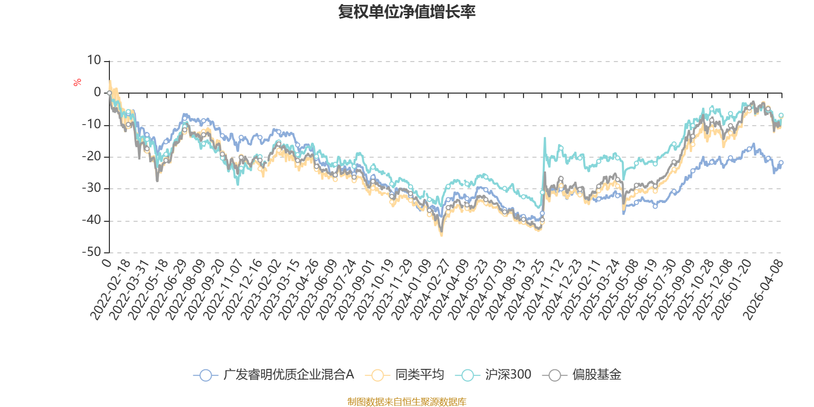 截至4月8日,广发睿明优质企业混合A近三个月复权单位净值增长率为-3.80%,位于同类可比基金210/265;近半年复权单位净值增长率为-1.32%,位于同类可比基金177/265;近一年复权单位净值增长率为24.94%,位于同类可比基金208/265;近三年复权单位净值增长率为-6.86%,位于同类可比基金227/261。