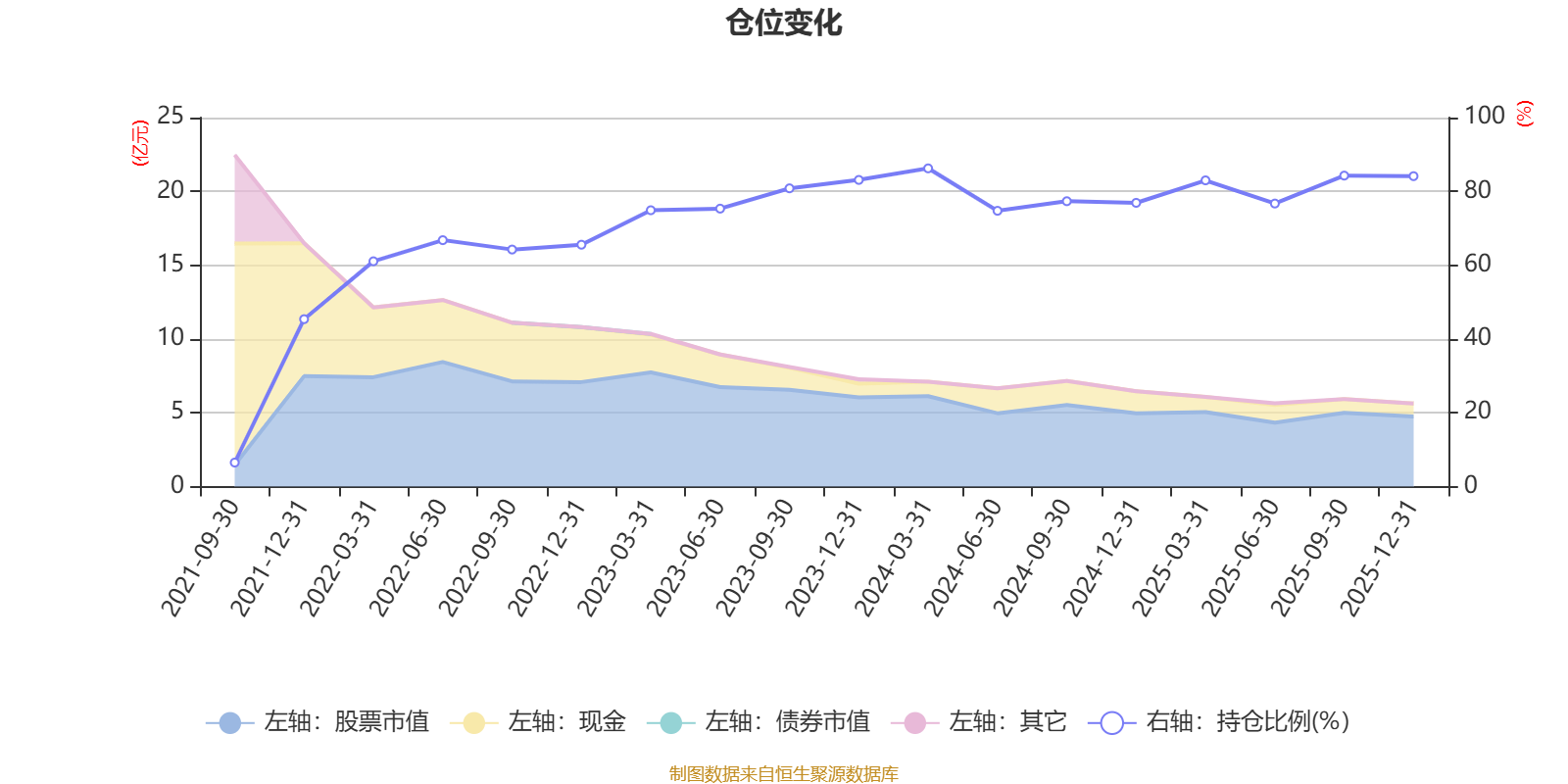 据定期报告数据统计,近三年平均股票仓位为79.79%,同类平均为86.12%。2024年一季度末基金达到86.24%的最高仓位,2021年三季度末最低,为6.51%。