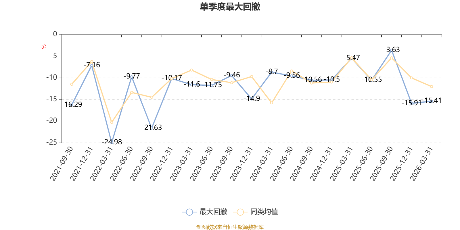 截至4月8日,基金近三年最大回撤为26.58%,同类可比基金排名66/259。单季度最大回撤出现在2022年一季度,为24.98%。