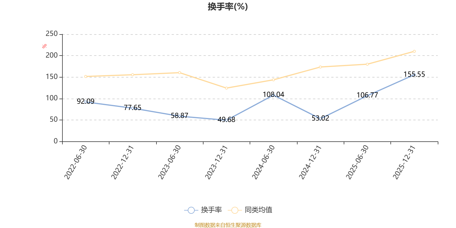 截至2025年12月31日,基金最近一年换手率约254.65%,持续低于同类均值。